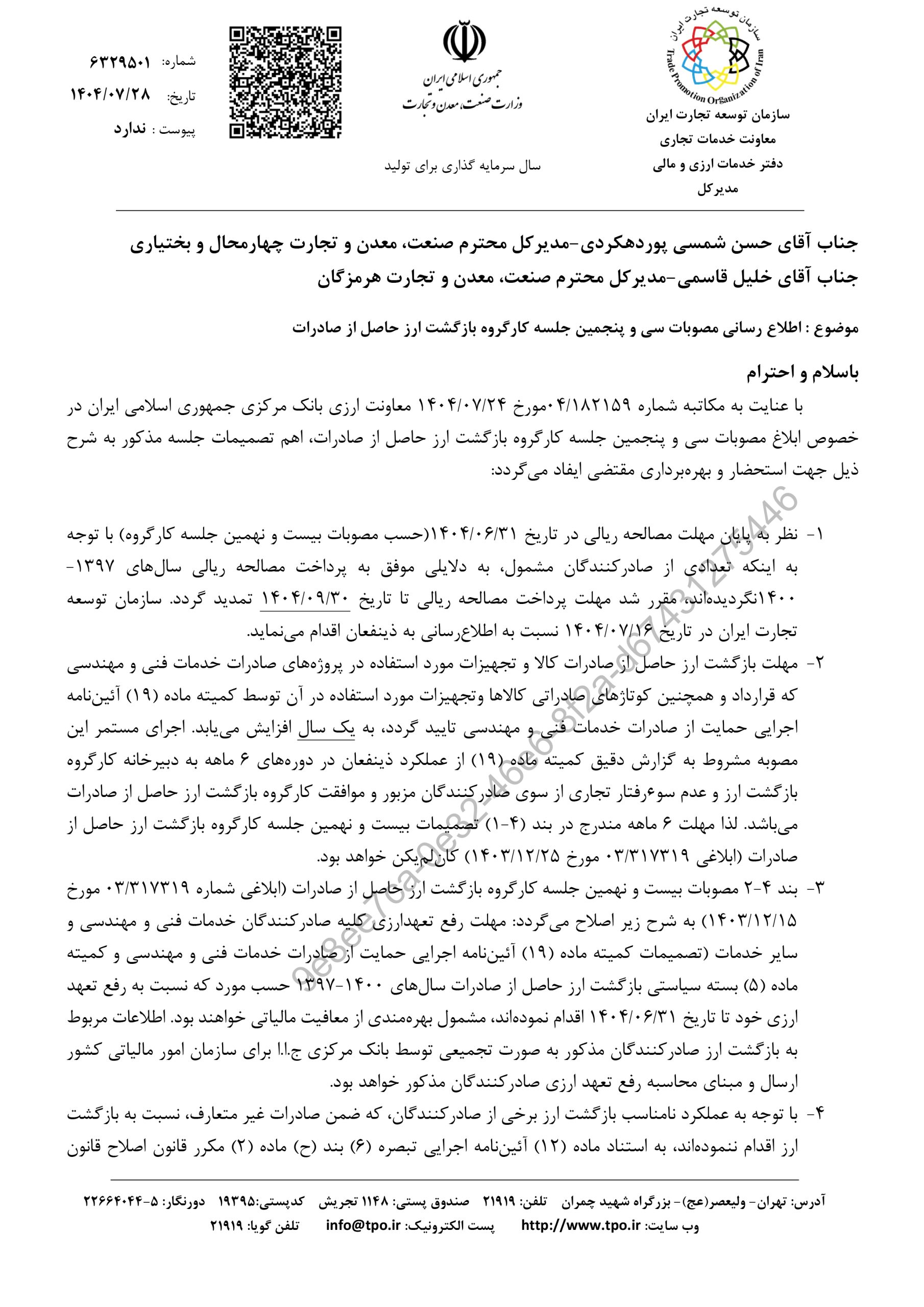 اطلاع رسانی مصوبات سی و پنجمین جلسه کارگروه بازگشت ارز حاصل از صادرات در تاریخ ۱۴۰۴-۰۸-۰۴ نویسنده: Ramezani لینک کوتاه https://qssez.ir/?p=12206